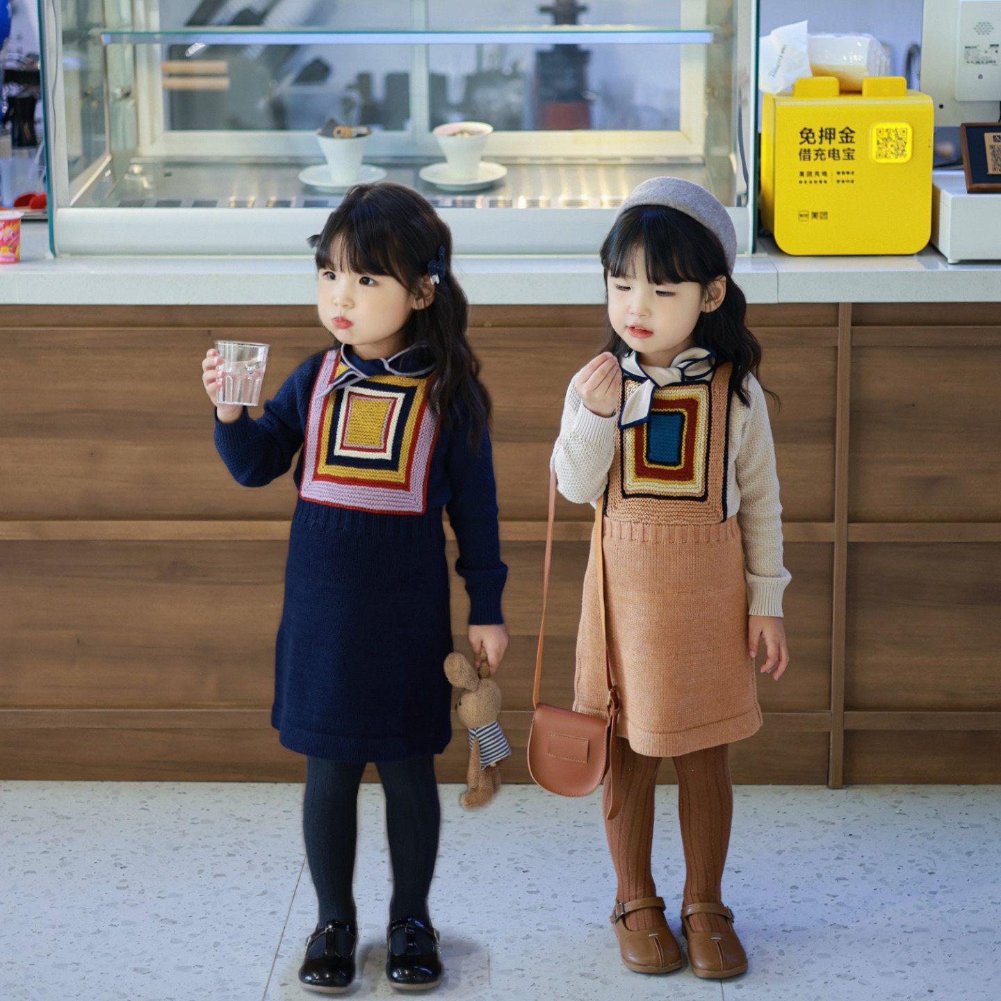 25秋冬新品 MP女童针织毛线衣打底衫百搭半身裙手工方块背带裙子