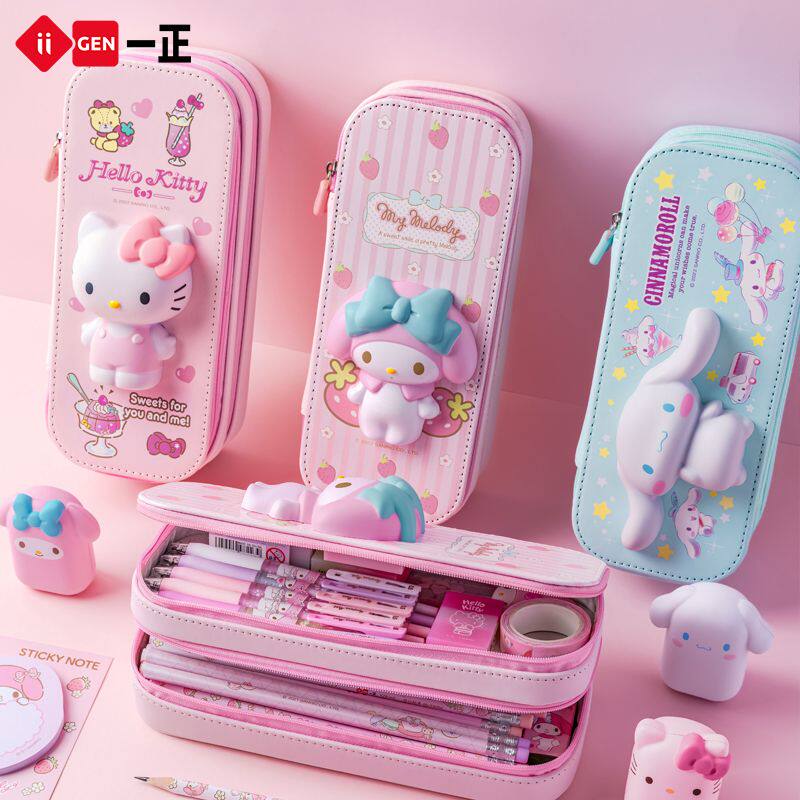 正品三丽鸥立式笔袋库洛米可伸缩铅笔盒大容量小学生中学生笔筒笔盒二合一2025新款美乐蒂女孩儿童创意文具盒