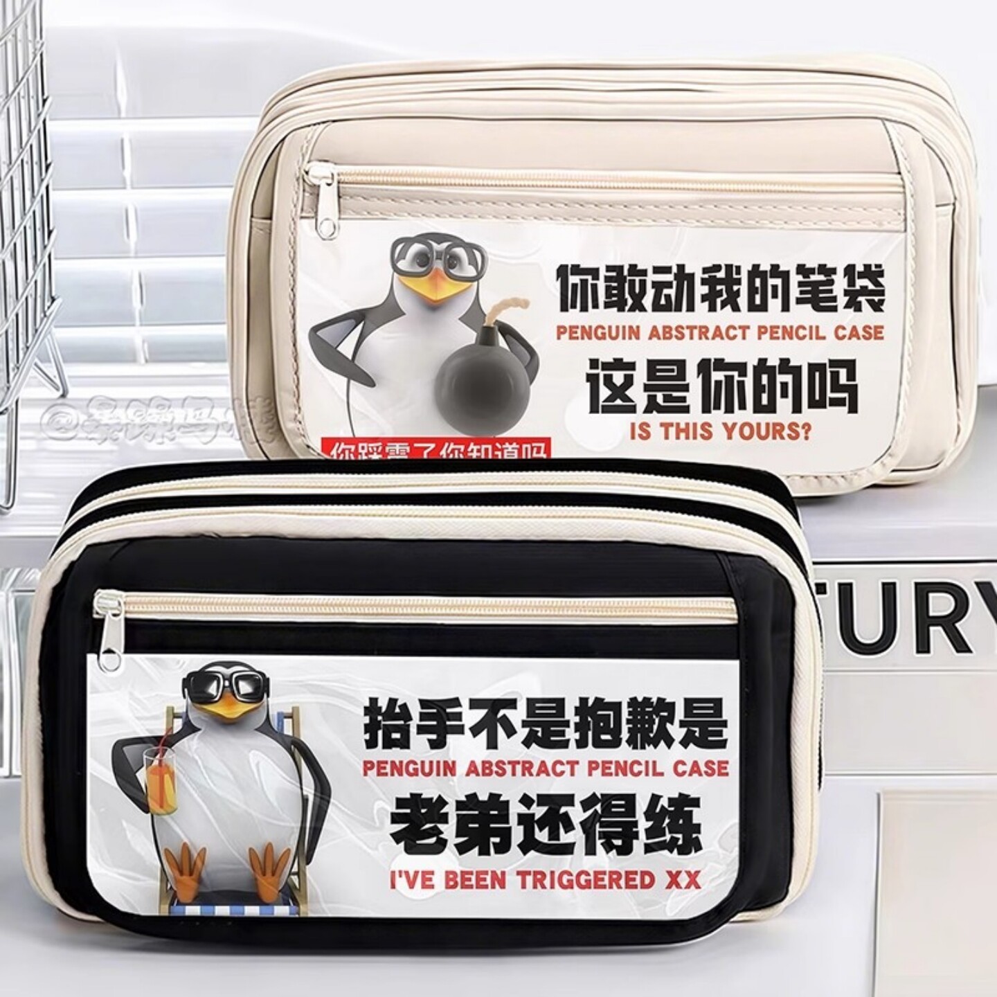 威廉泰尔企鹅表情包笔袋学生大容量多层收纳包高雅人士创意文具盒
