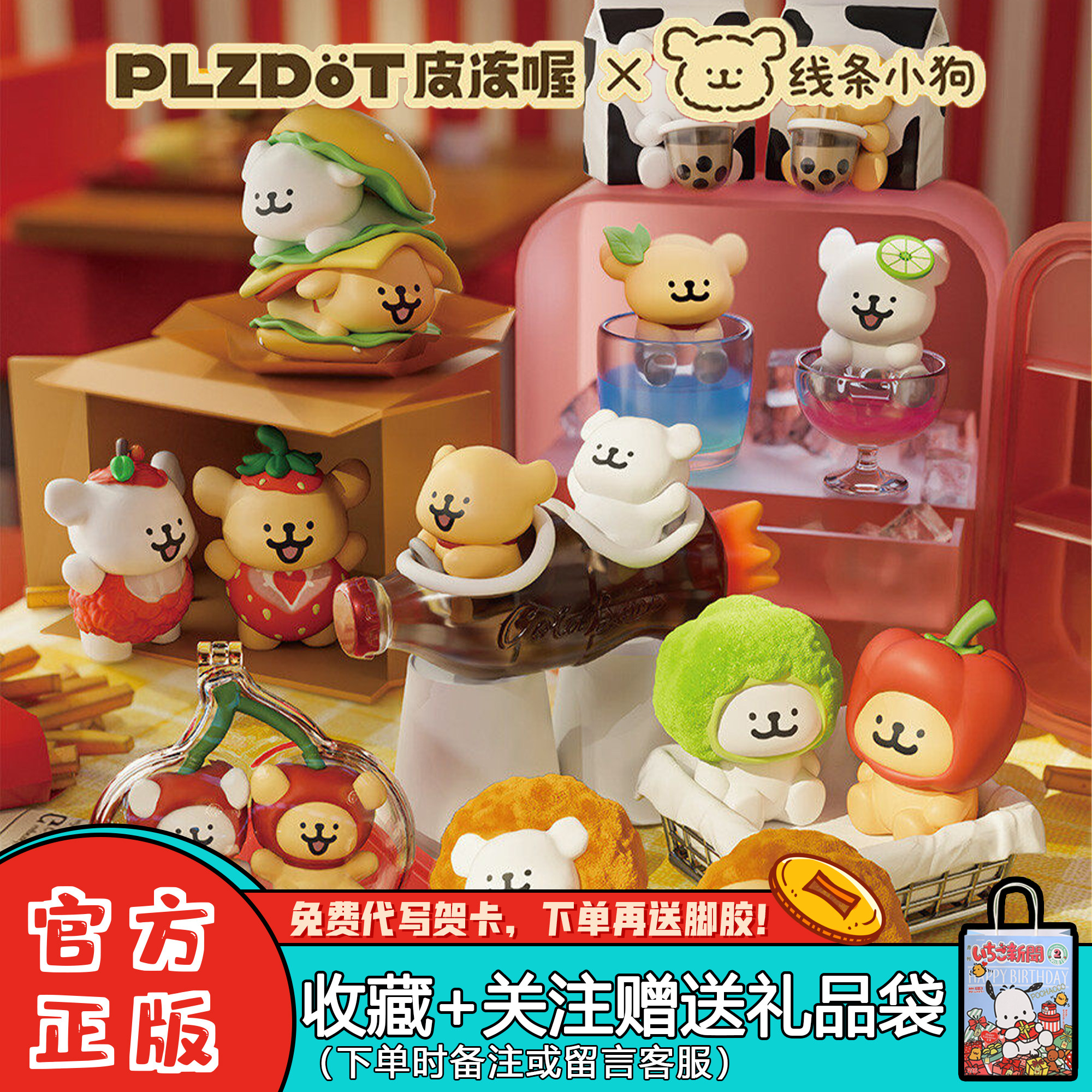 正品PLZDOT线条小狗盲盒快餐店系列潮玩周边可爱桌面摆件女生礼物