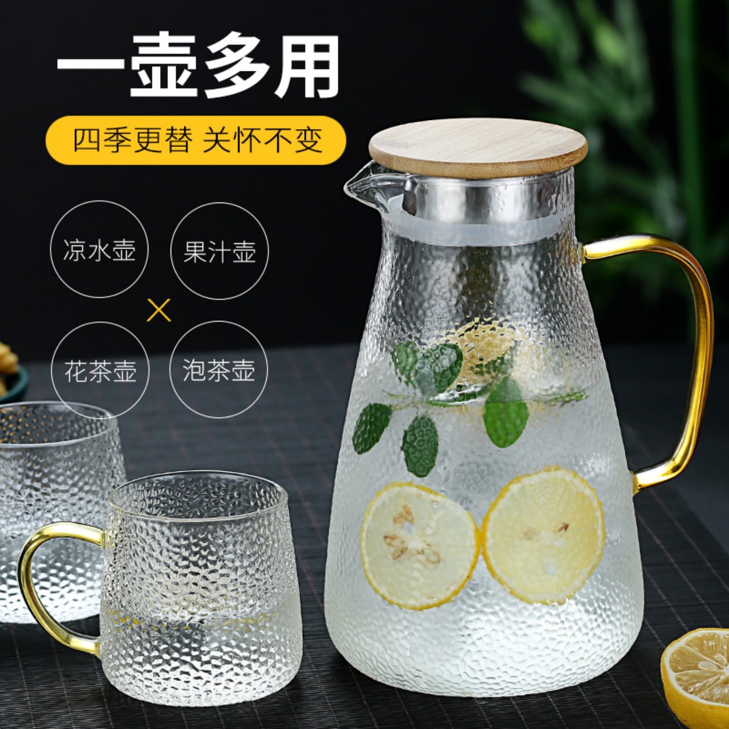 耐热玻璃水壶水具套装果茶壶凉茶壶整套水杯锤纹壶大容量家用待客