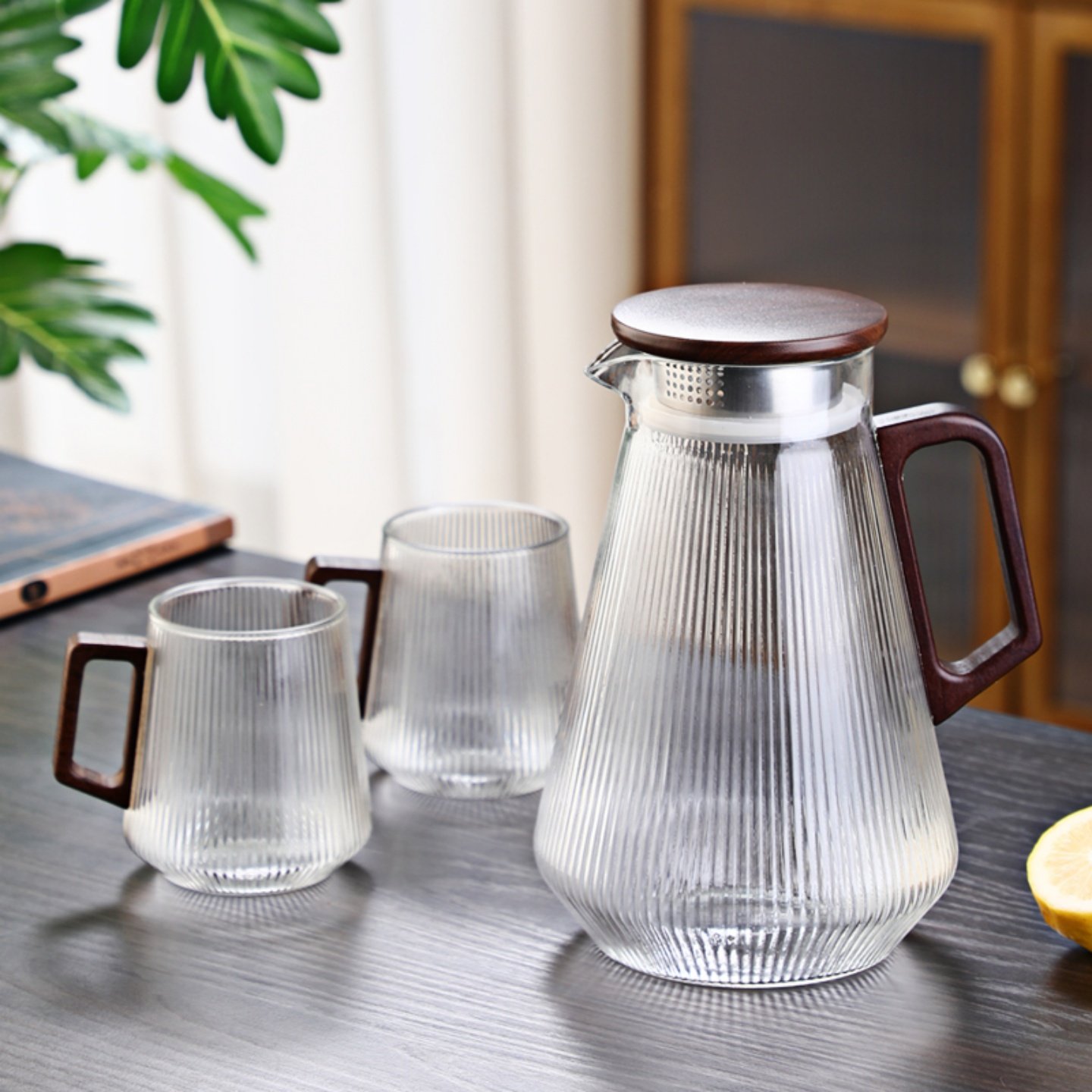 耐高温玻璃水壶水杯加厚防爆木把条纹壶泡茶果汁家用待客水具套装