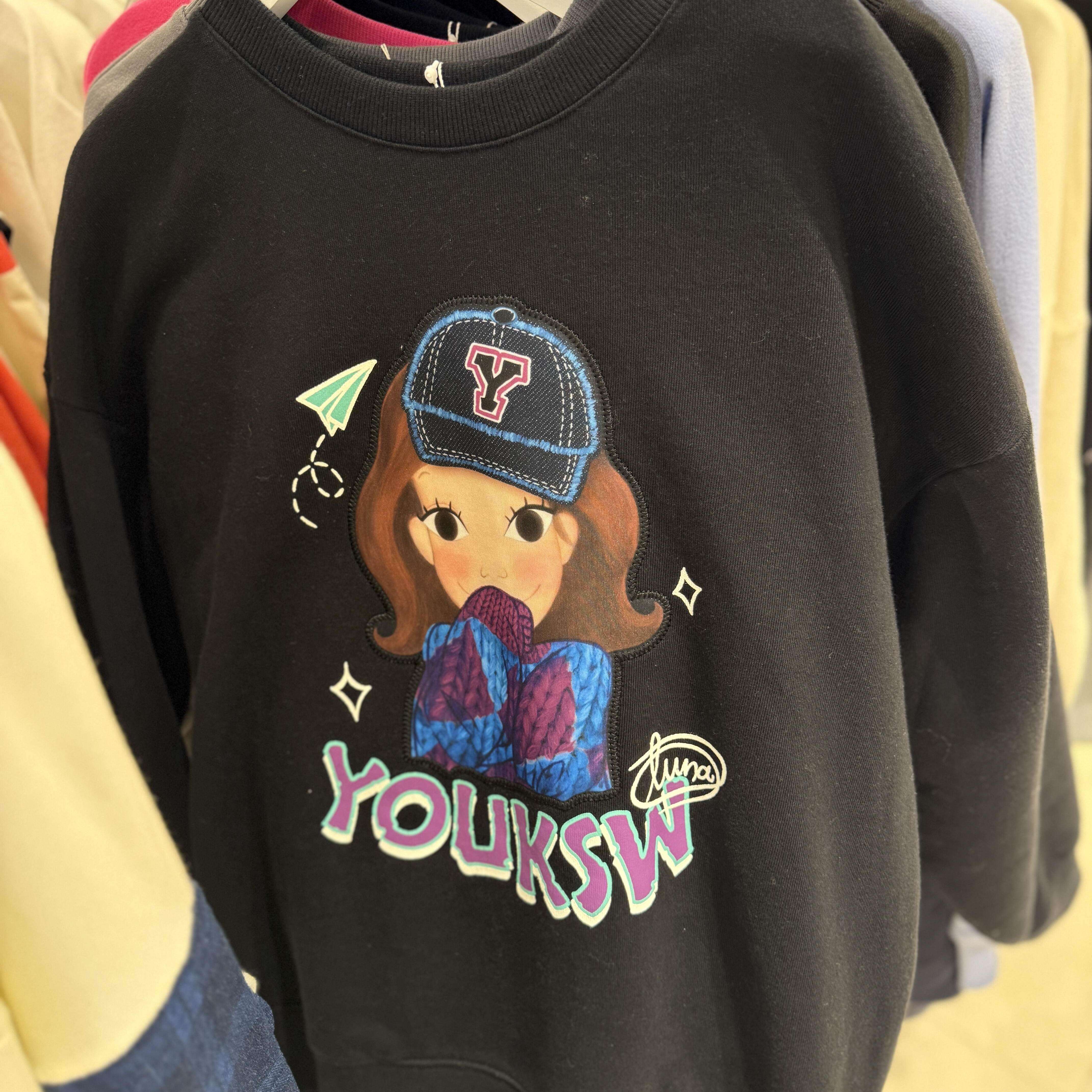 正品陆心媛2026秋冬新款宽松休闲上衣时尚元气甜美卡通卫衣套头衫
