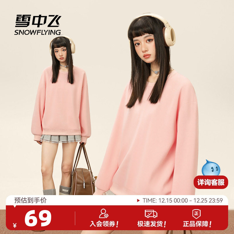 雪中飞粉色卫衣女秋季2025新款外套学生甜酷风韩系无帽长袖上衣PC