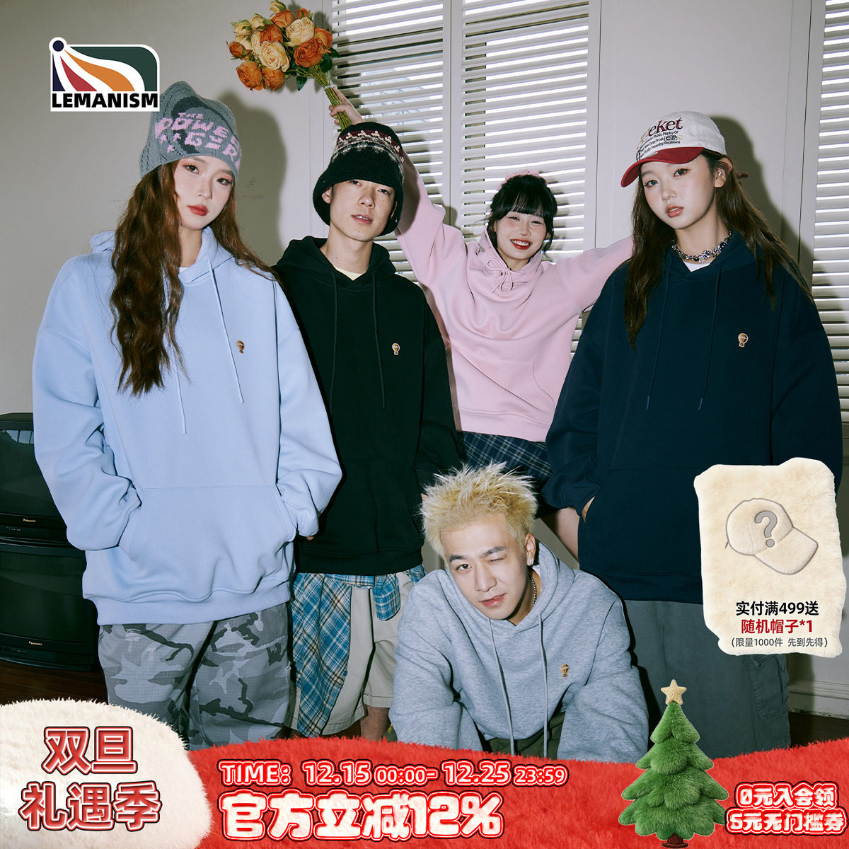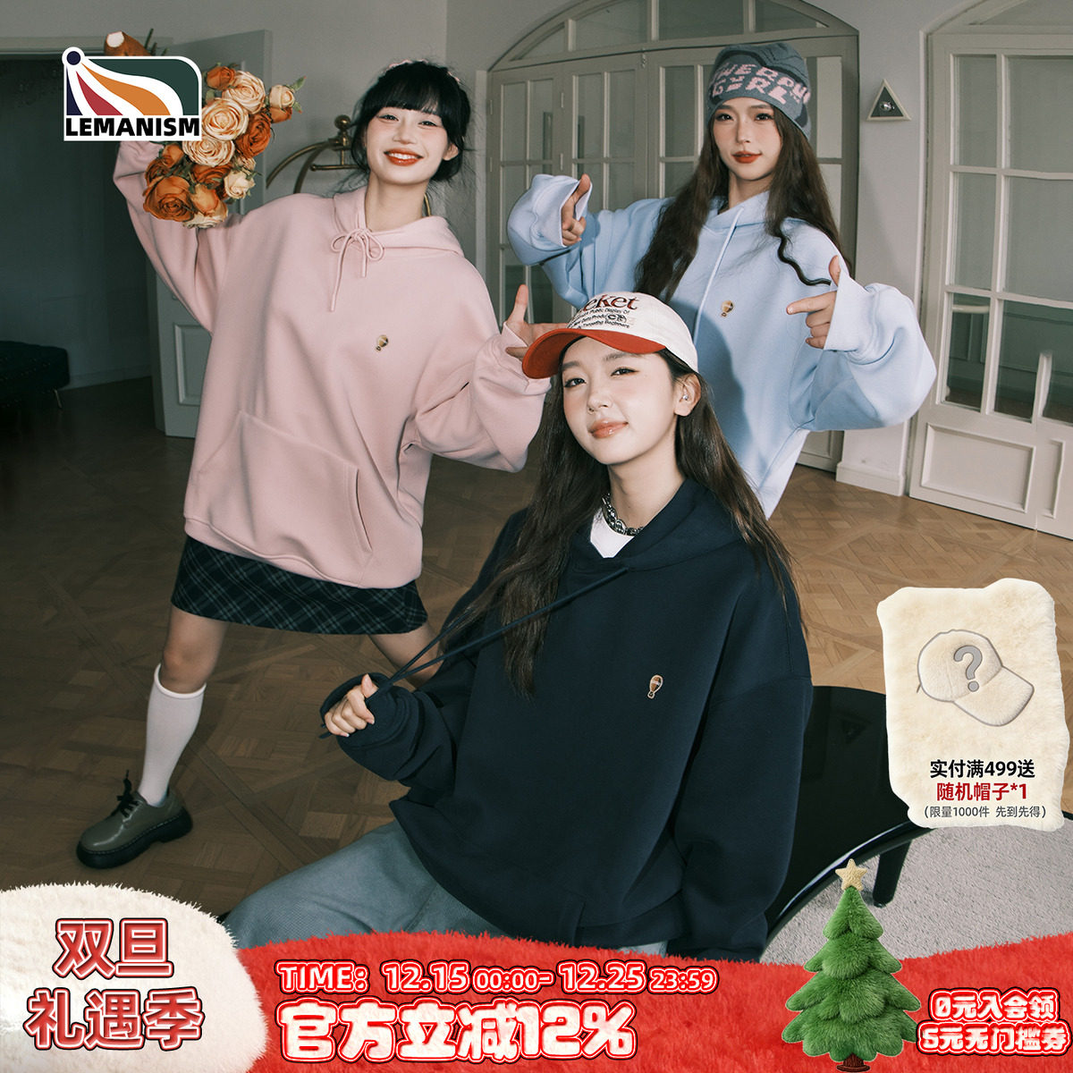 lemanism粉色春秋加绒连帽卫衣男款2025春秋400g重磅情侣外套女潮