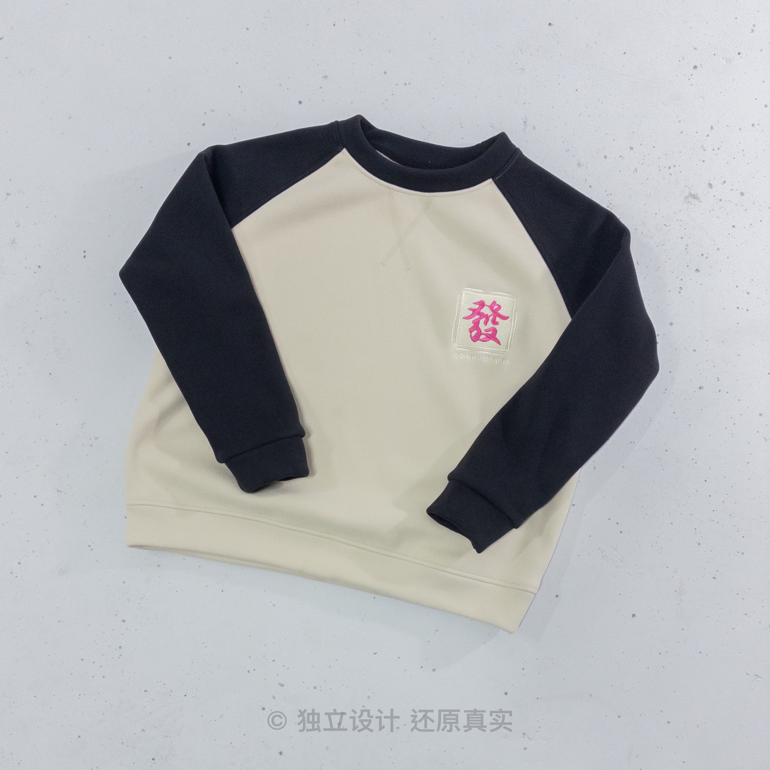 粉色插肩袖卫衣女2026新款爆款秋冬宽松圆领加绒无帽大码拼接上衣