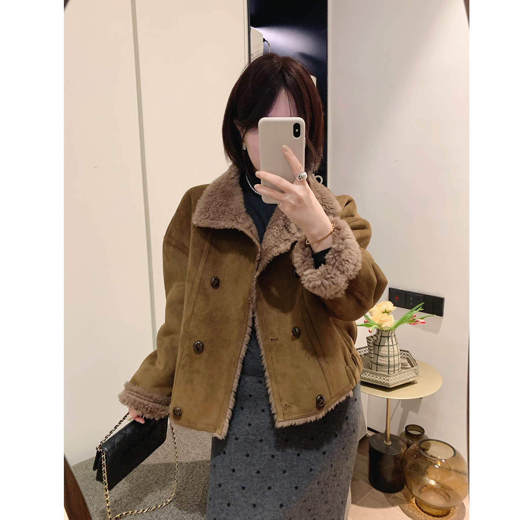 - 毛绒外套女羊羔毛