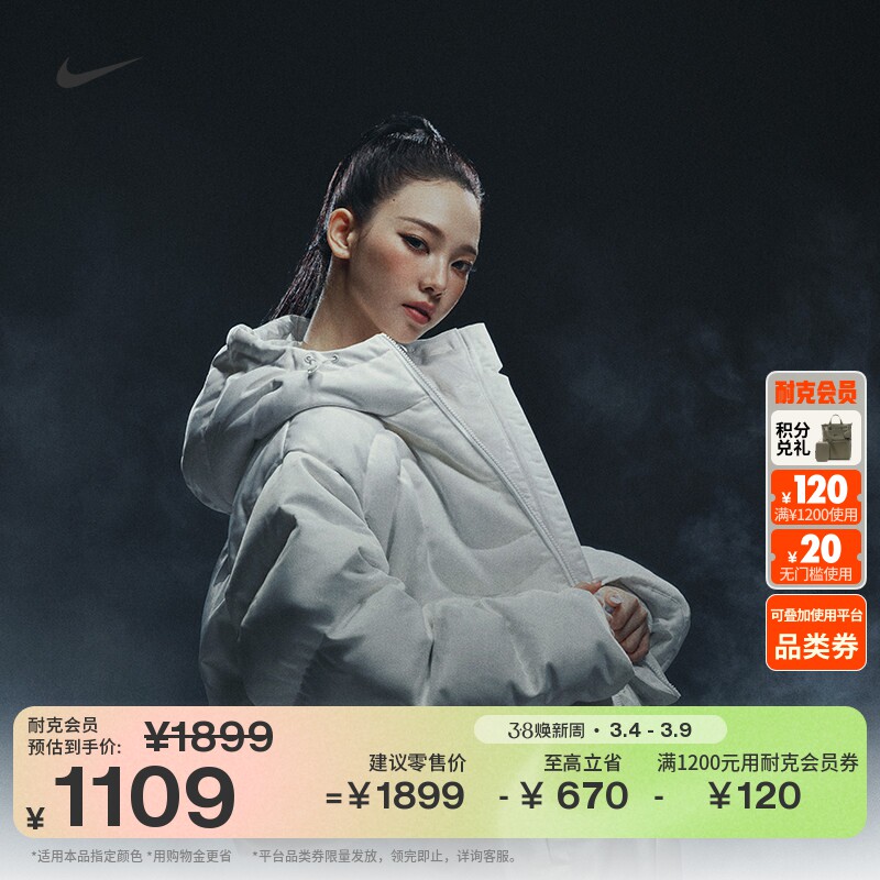 耐克暖钩羽绒服KARINA柳智敏同款女夹克冬新款NIKE PUFFER IB2006