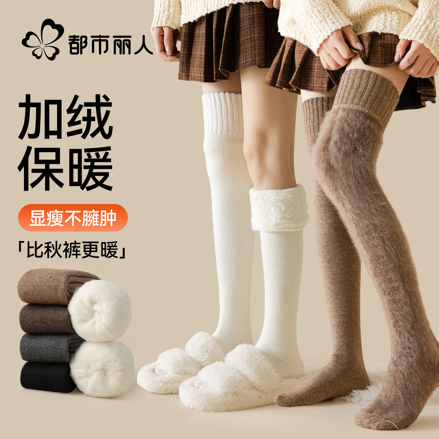 都市丽人女童长筒袜秋冬加绒加厚护膝保暖袜冬季儿童过膝高筒袜子