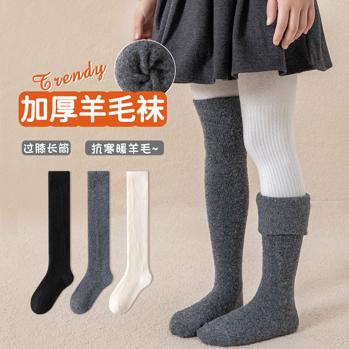 女童长筒袜秋冬季加厚过膝儿童羊毛袜女孩宝宝保暖高筒小腿堆堆袜