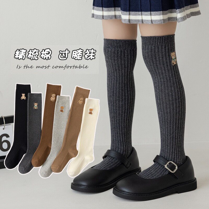 儿童长筒袜春秋款纯棉女童宝宝过膝袜韩版学院风小熊高筒小腿袜潮