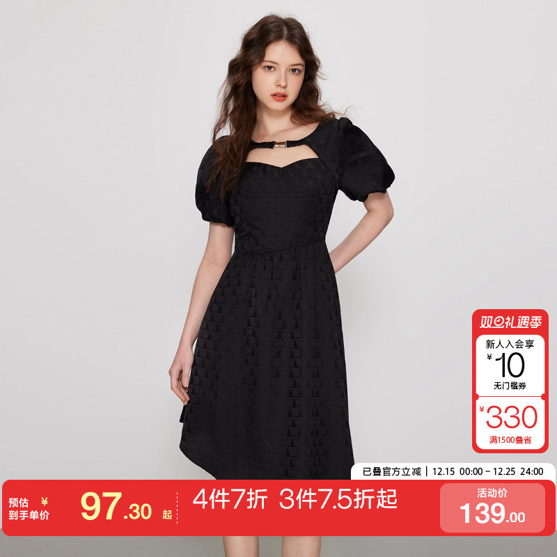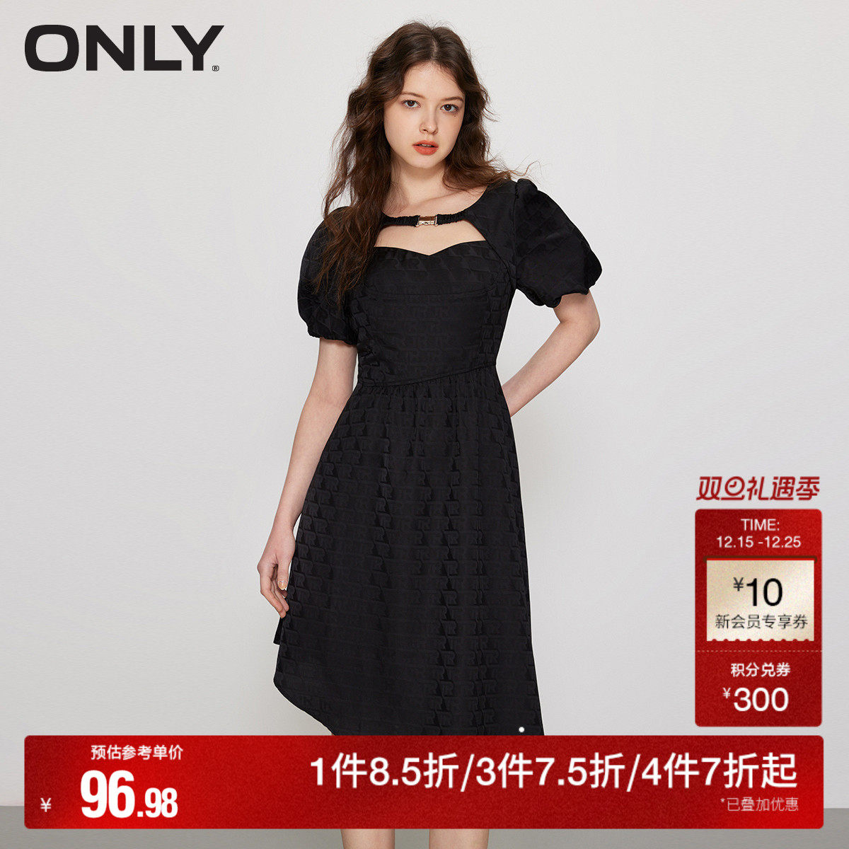 tq区绫致ONLY2025春夏新款时尚短泡泡袖中长款雪纺连衣裙女士潮流