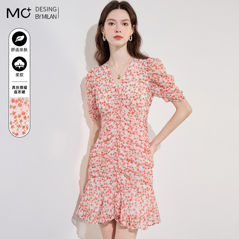 朵以2023春装新款时尚优雅气质中长款雪纺连衣裙收腰38DC849073