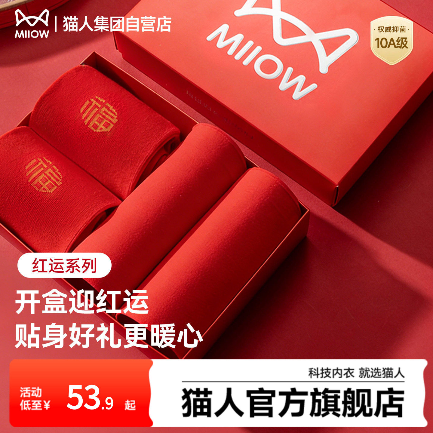 猫人新款男士红色马年平角内裤本命年新年礼盒10A抑菌纯棉四角裤