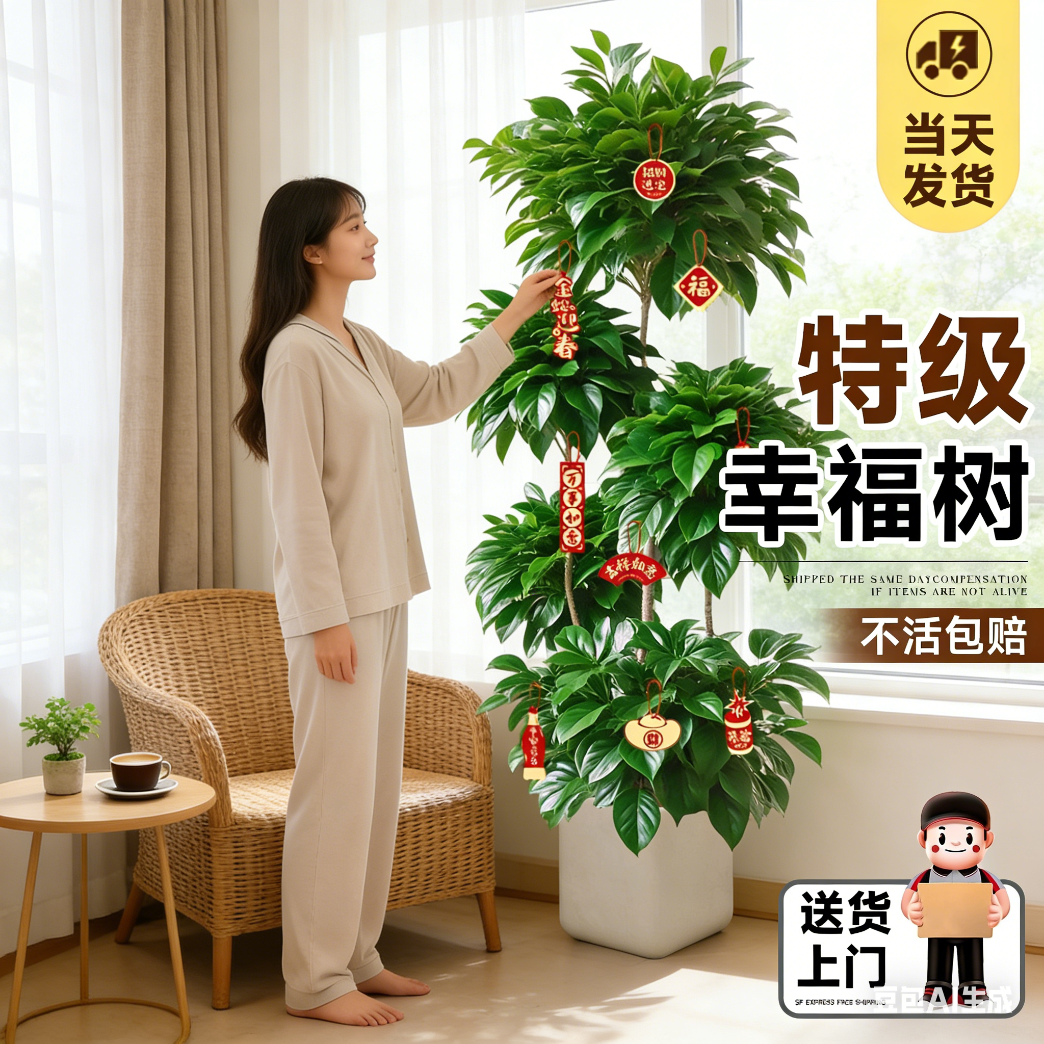 幸福树客厅盆栽大型室内多层植物乔迁好养净化空气四季常青平安树