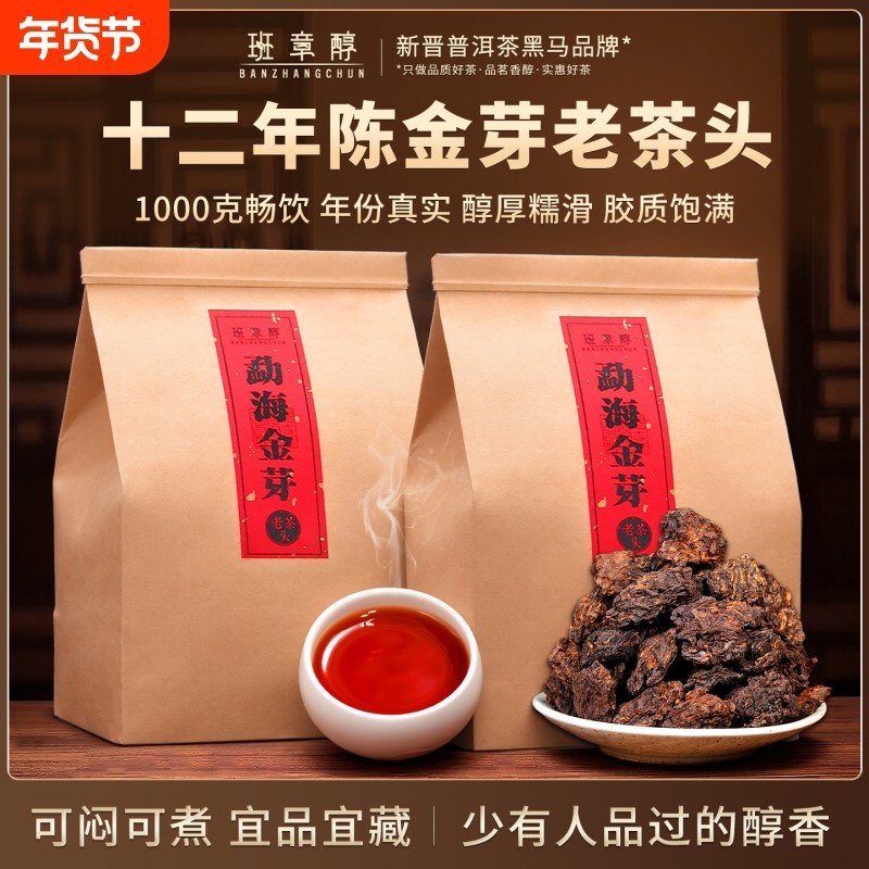 金芽老茶头1千克云南普洱茶熟茶散茶叶 老班章韵陈年熟普中秋礼盒