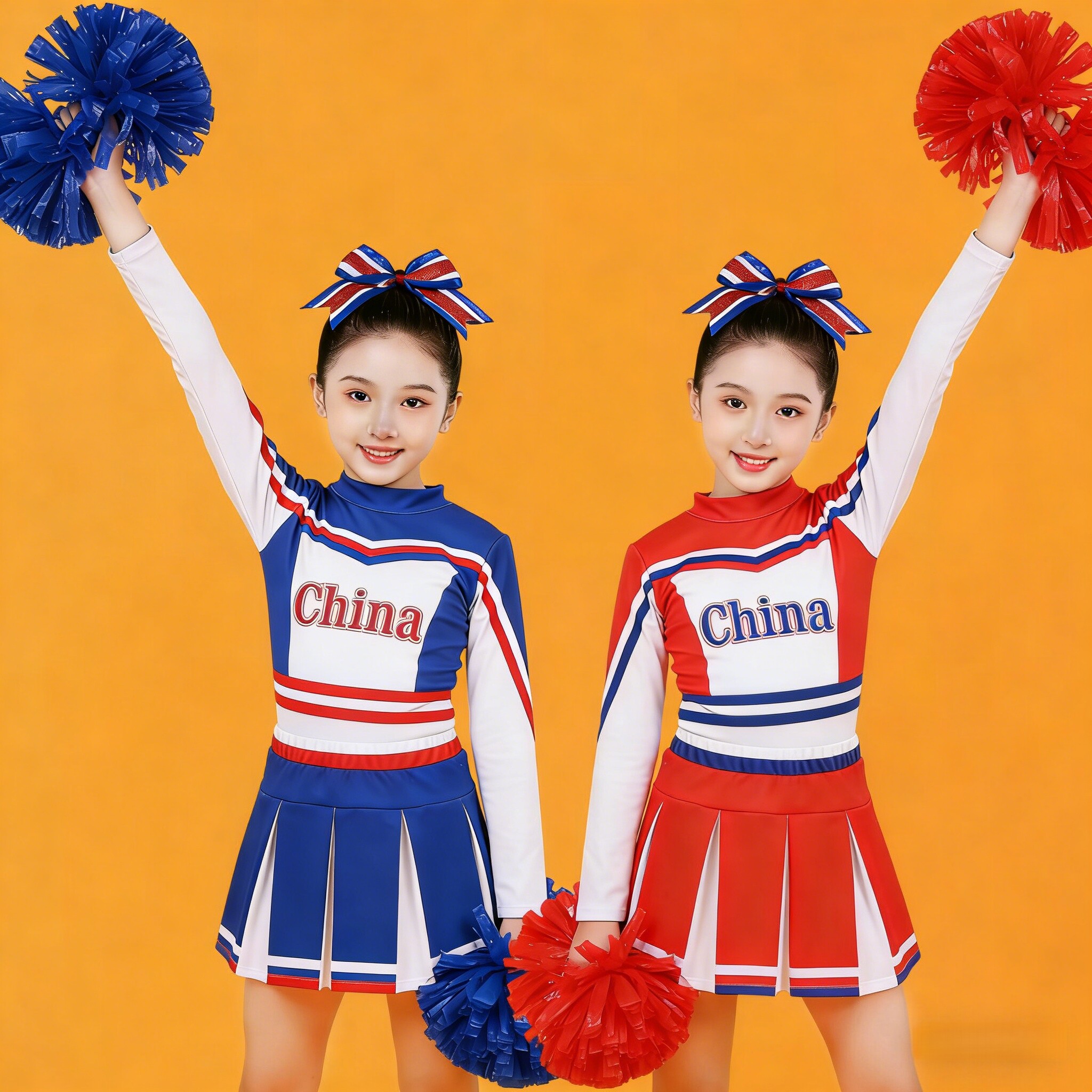 幼儿园新款啦啦队比赛舞蹈服装儿童男女童长袖啦啦操运动会演出服