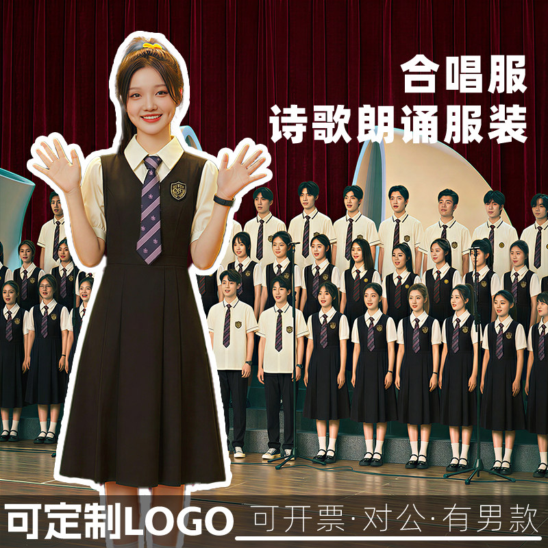 学生毕业照学院风连衣裙套装初高中男女同款舞台诗歌朗诵合唱服装