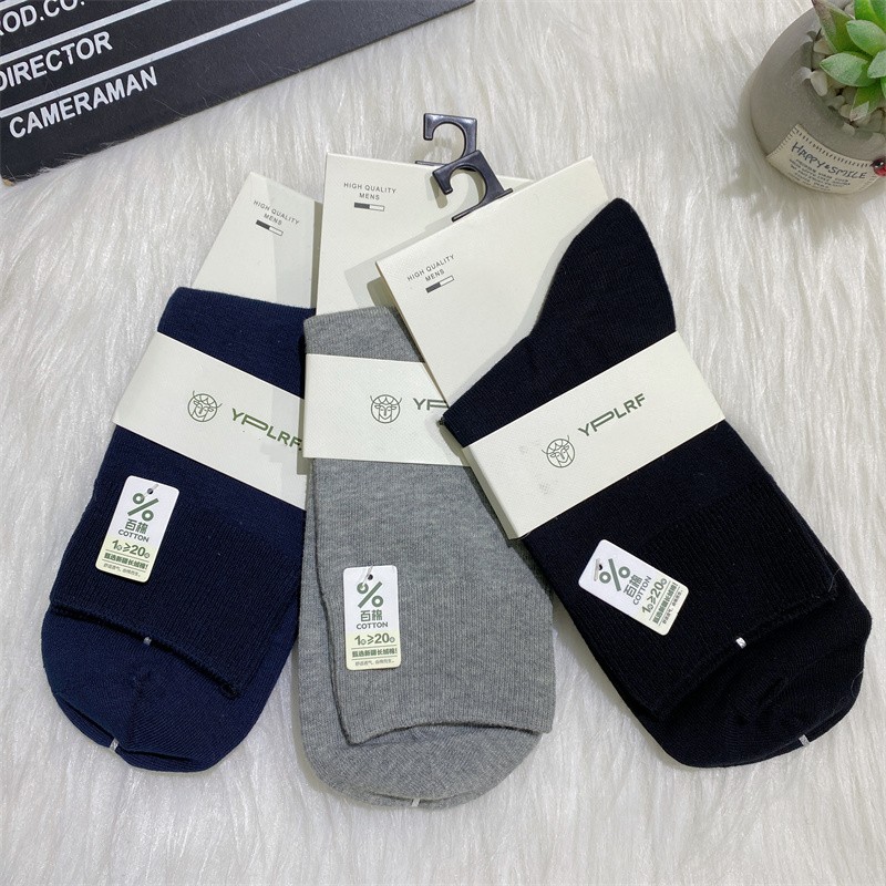鹿人8009男士百分百全棉松口袜纯棉中高筒春秋四季老年袜商务袜子