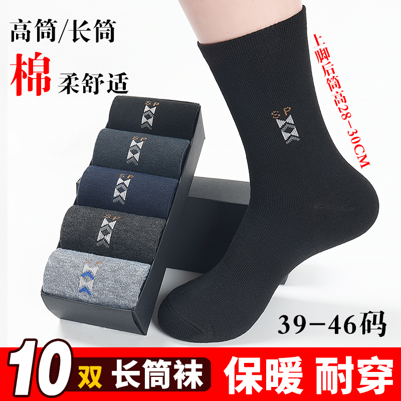 10双袜子男士中筒棉袜商务纯色四季秋冬长袜吸汗防臭耐磨中老年款