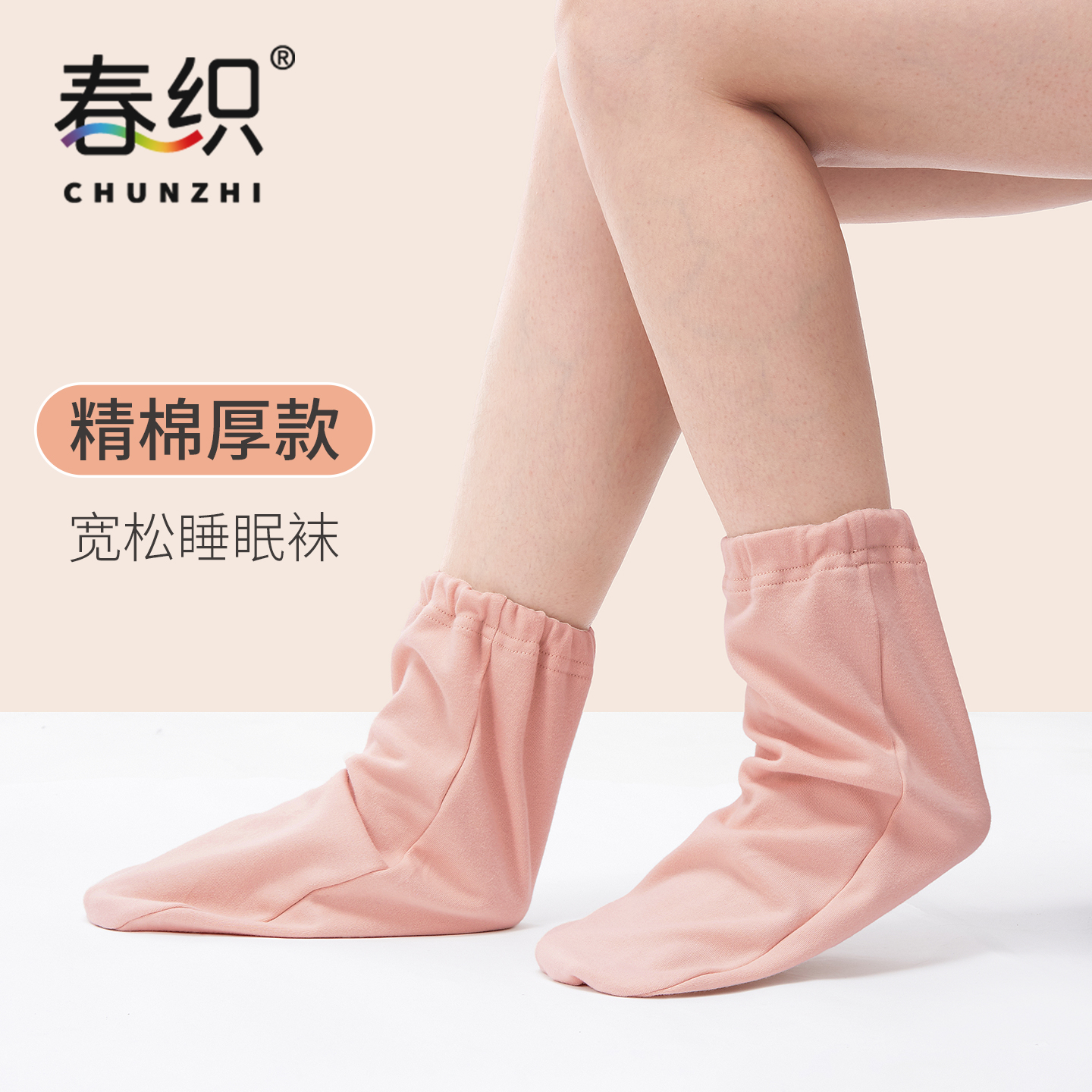 春织中老年袜套女睡觉防风保暖加厚纯棉宽松中筒秋冬季护脚空调袜