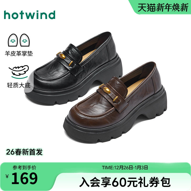 热风厚底乐福鞋女2026年春季新款英伦风黑色小皮鞋百搭增高女鞋子