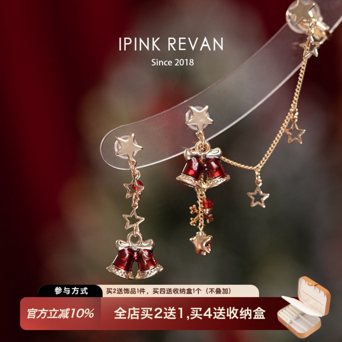 IPINK原创圣诞铃铛耳环耳骨夹女不对称ab款气质长款无耳洞耳饰