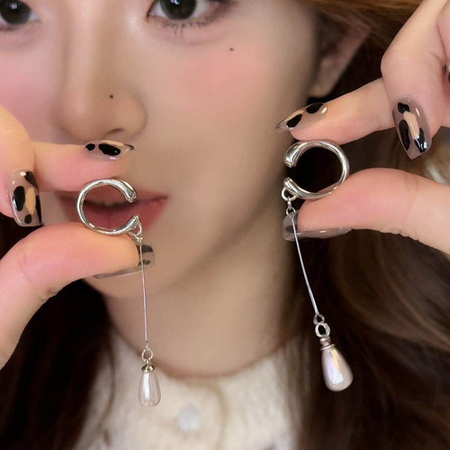 长款流苏链条珠珠无耳洞耳骨夹女冷淡风百搭简约耳挂小众耳饰耳夹