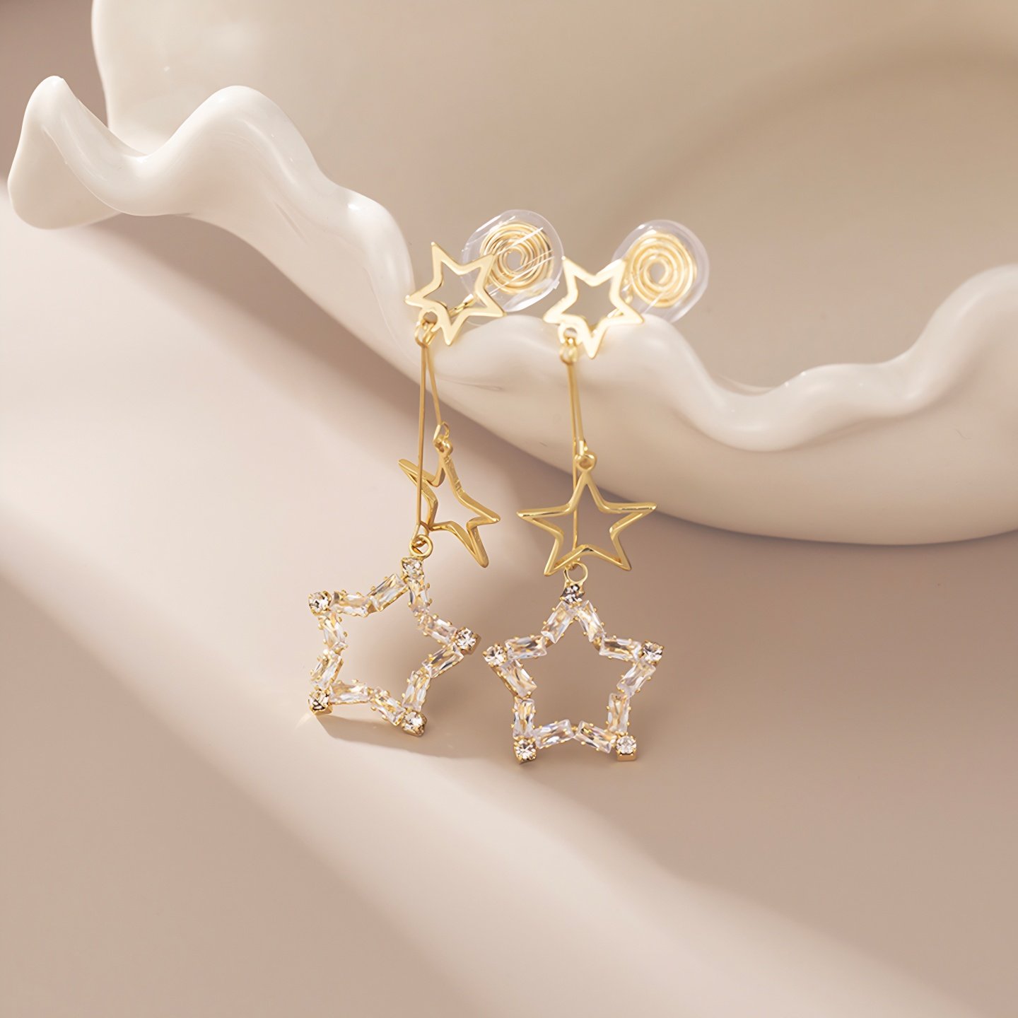 蚊香盘耳夹无耳洞超闪五角星长款气质时尚网红潮流高级感耳钉耳环
