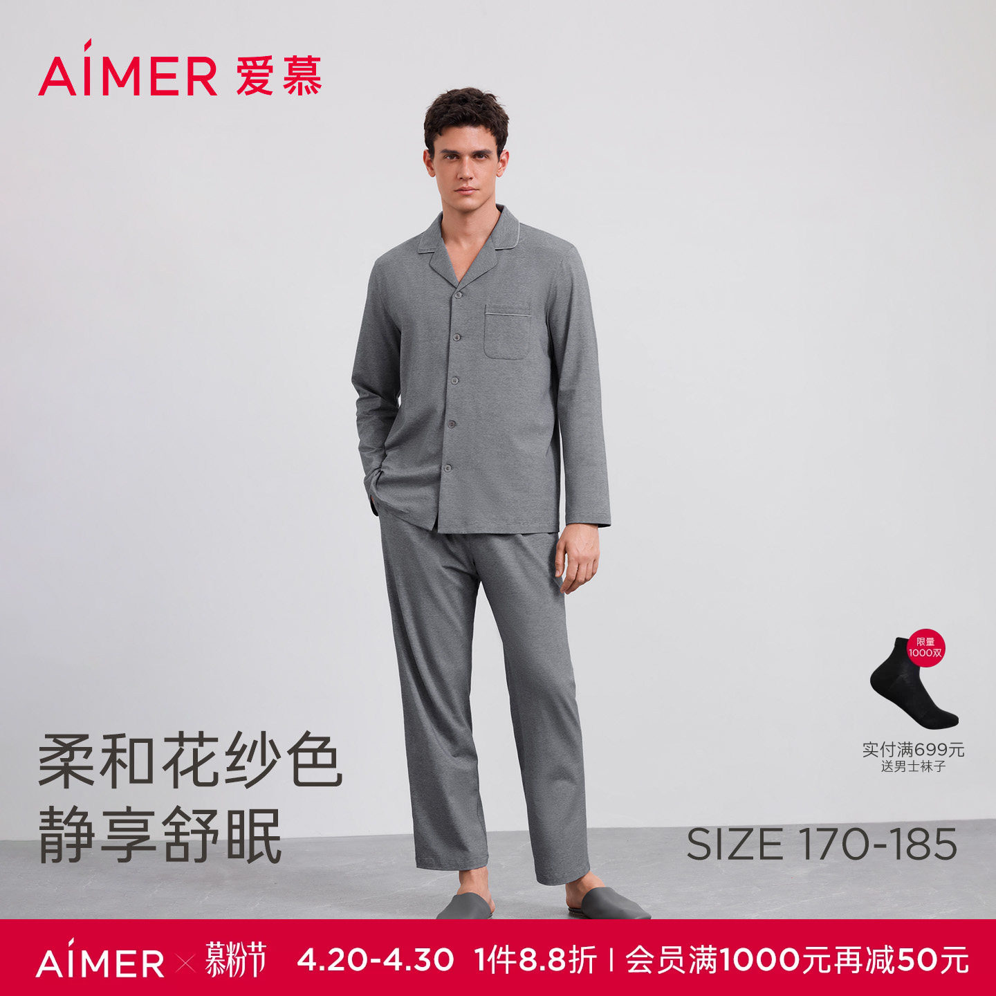 爱慕先生棉质抗静电抗菌男士家居睡衣套装长袖长裤开衫春夏可外穿