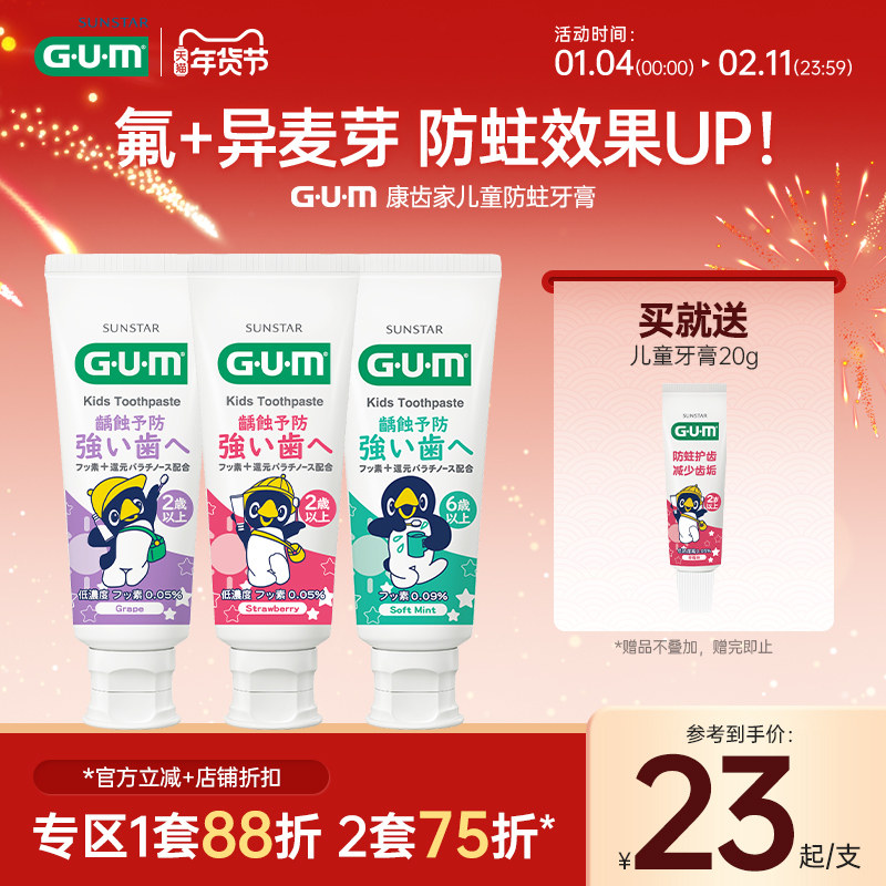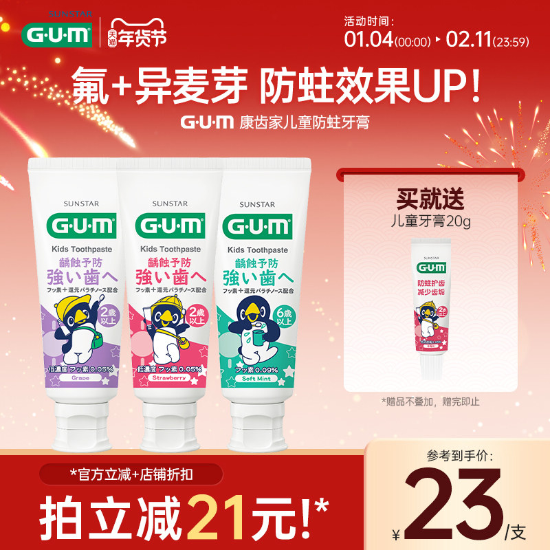 GUM康齿家儿童牙膏宝宝换牙期含氟防蛀2岁-6岁-12岁不可吞咽食用