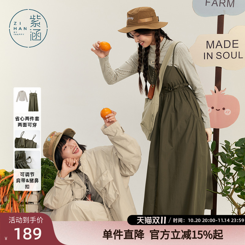 紫涵户外街头风立领条纹针织衫吊带连衣裙两件通勤套装女秋季新款