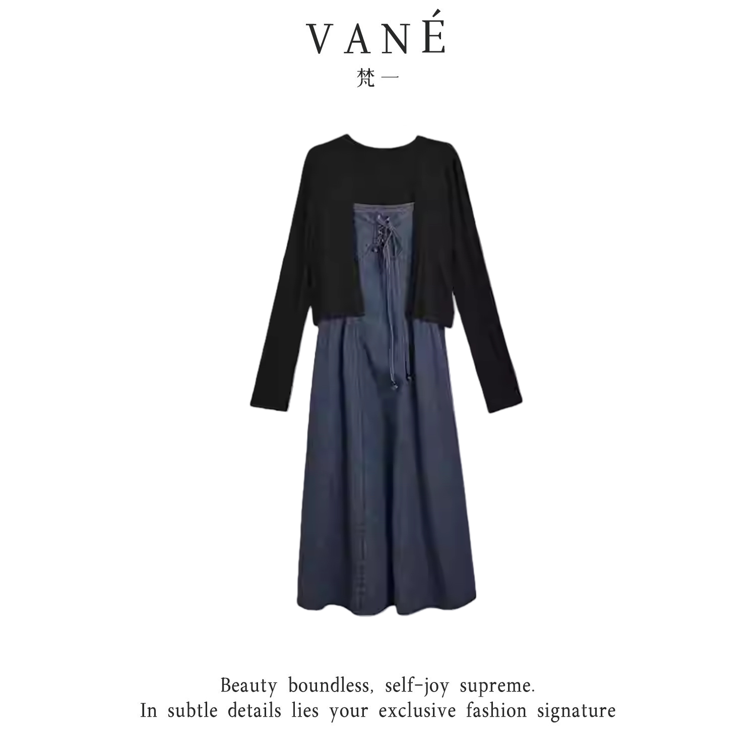 梵一/FANYI 2026夏季新款针织开衫牛仔吊带裙两件套女连衣裙套装