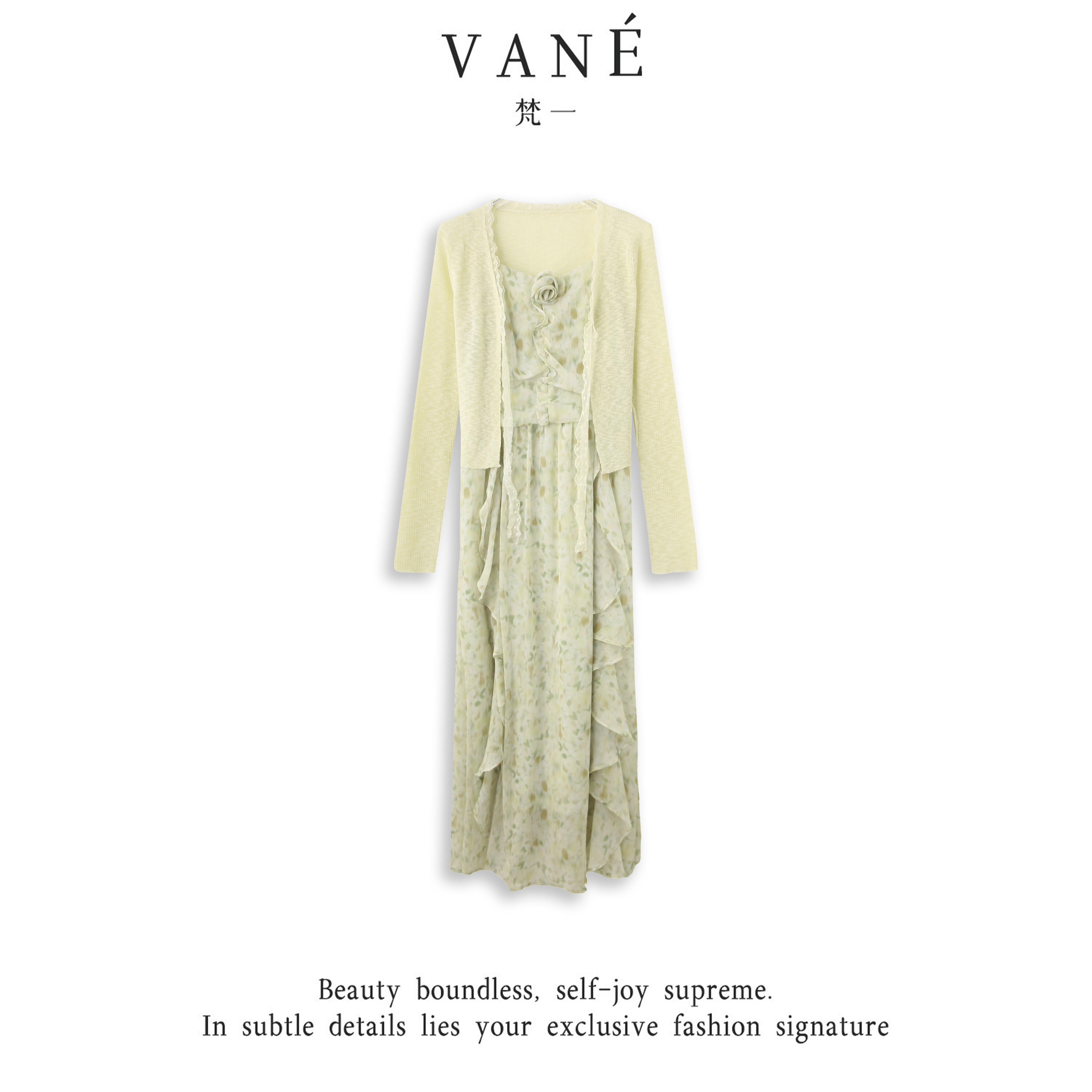 梵一/FANYI 针织开衫+碎花吊带连衣裙两件套春夏气质显瘦