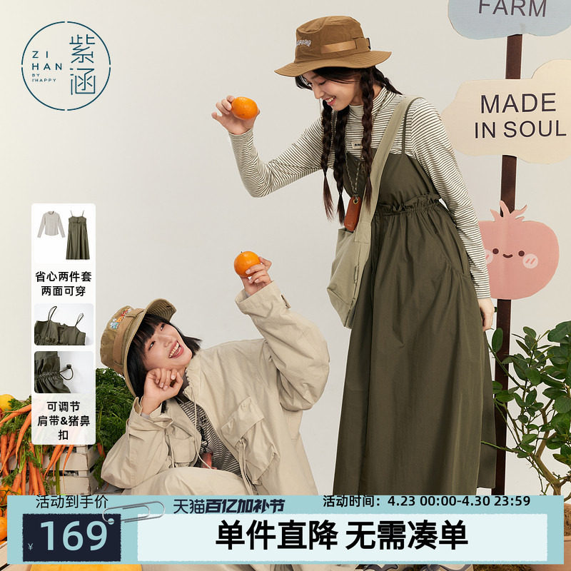 紫涵户外街头风立领条纹针织衫吊带连衣裙两件通勤套装女秋季新款
