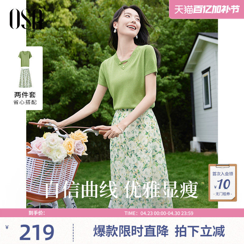 【小森林套裙】OSA欧莎小清新针织衫碎花半裙两件套女夏季连衣裙