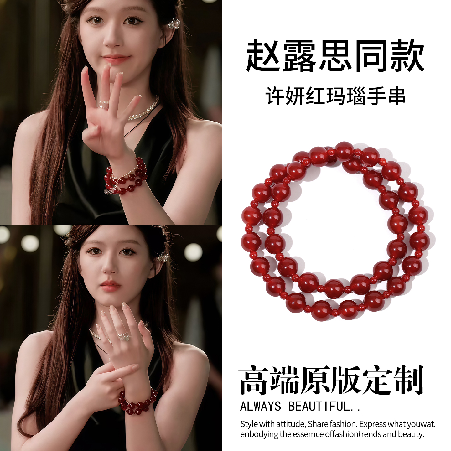 「红韵流转」赵露思许我耀眼许妍同款7A天然红玛瑙手链手链红手串