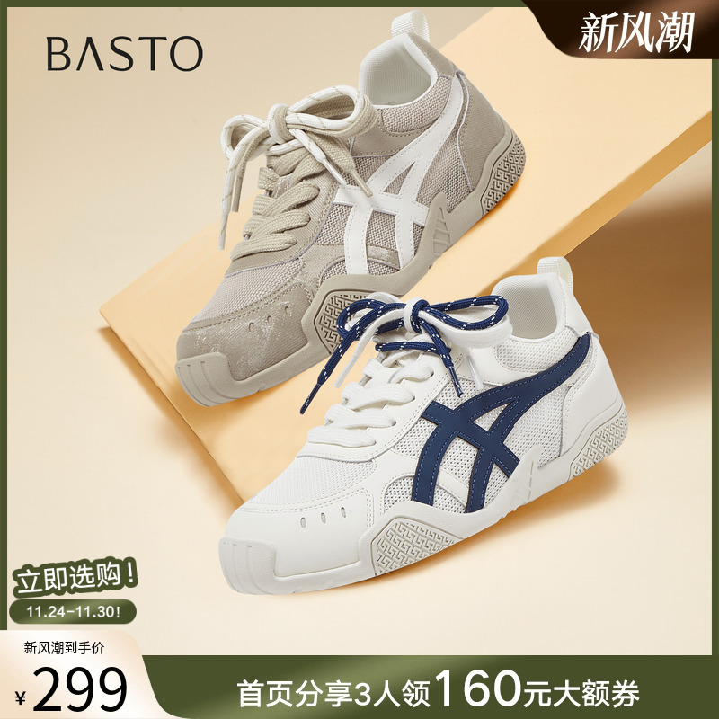 百思图2025夏季新款网面透气德训鞋小白鞋女运动休闲鞋D3633BM5