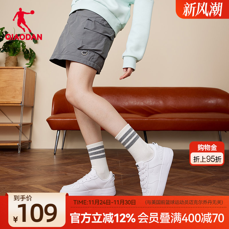 特步正品春秋休闲时尚潮流百搭轻便小白鞋女运动板鞋878118310025