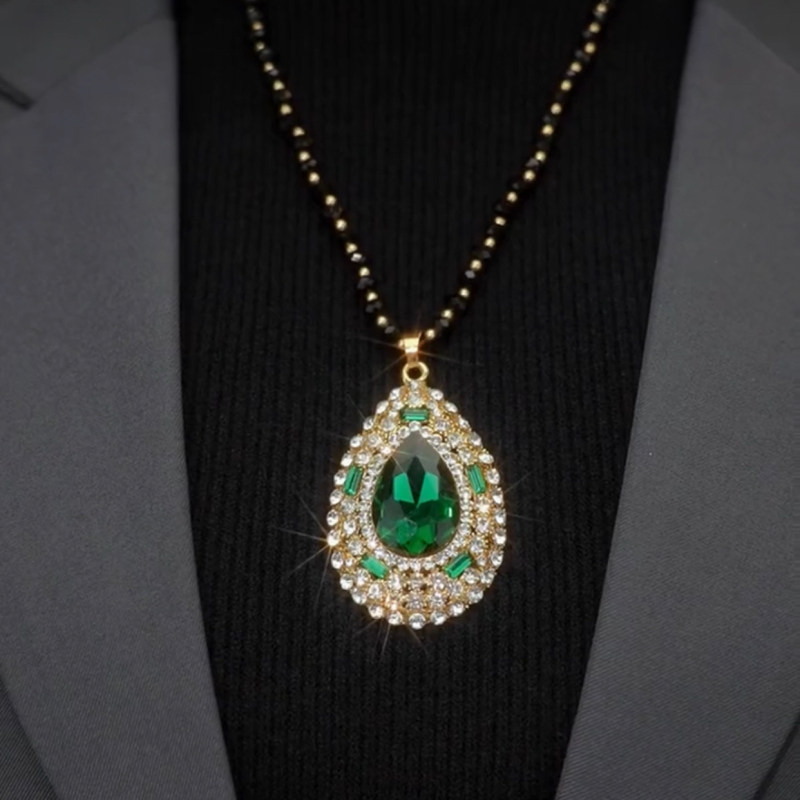 轻奢气质镶钻绿水滴毛衣链长款项链2025新款百搭高档衣服挂件配饰