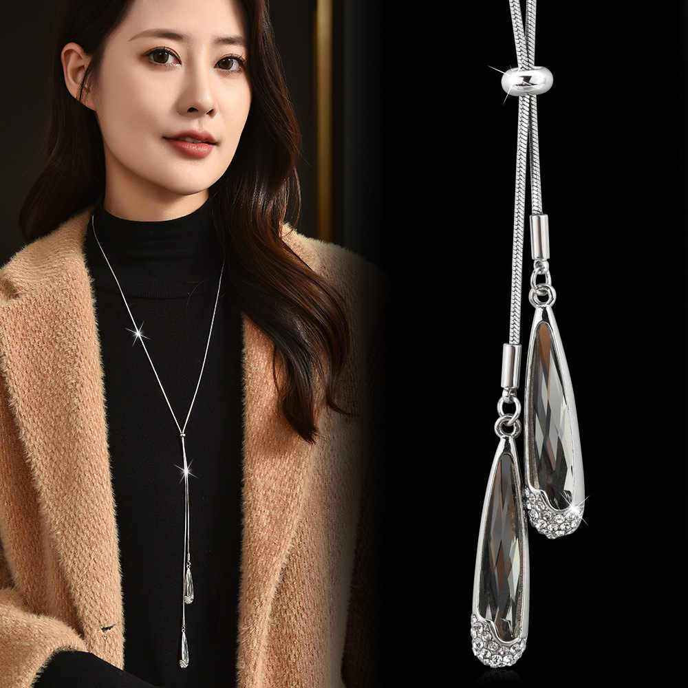时尚长款水晶项链女满钻水滴毛衣链秋冬大气百搭衣服配饰挂件吊坠