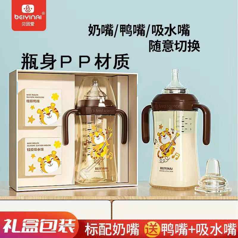 贝因爱宽口PPSU吸管杯婴儿奶瓶喝水学饮吸水嘴奶嘴鸭嘴三用240ml