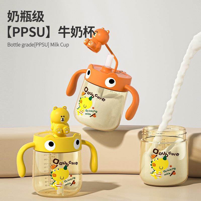 婴儿PPSU牛奶杯吸管学饮杯儿童刻度直饮直吸好吸水杯300ml耐摔杯