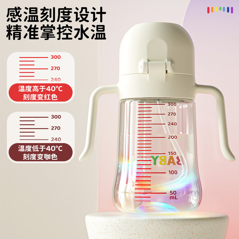 babypal宽口婴儿吸管杯感温水杯水嘴鸭嘴奶儿童学饮杯吸水杯防摔