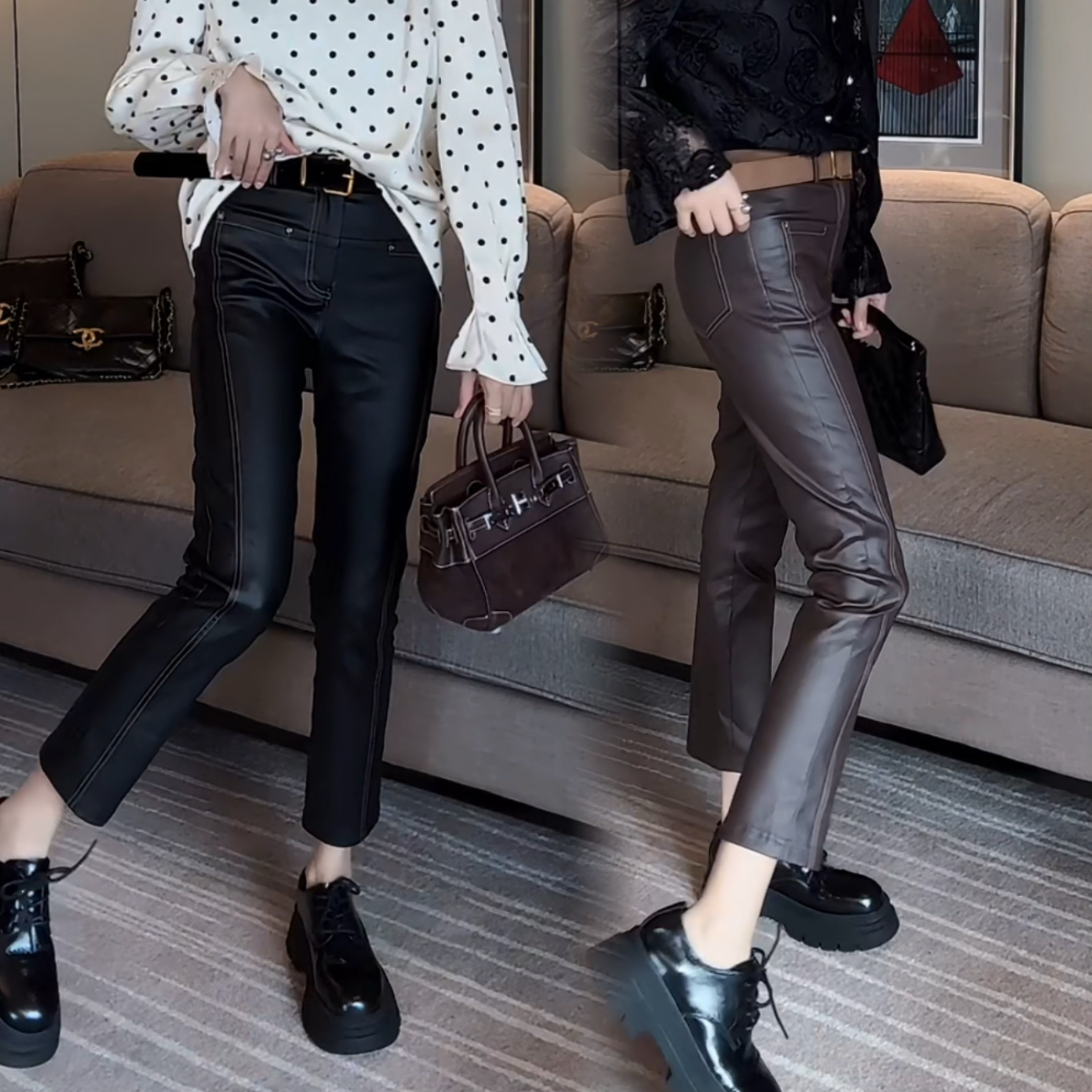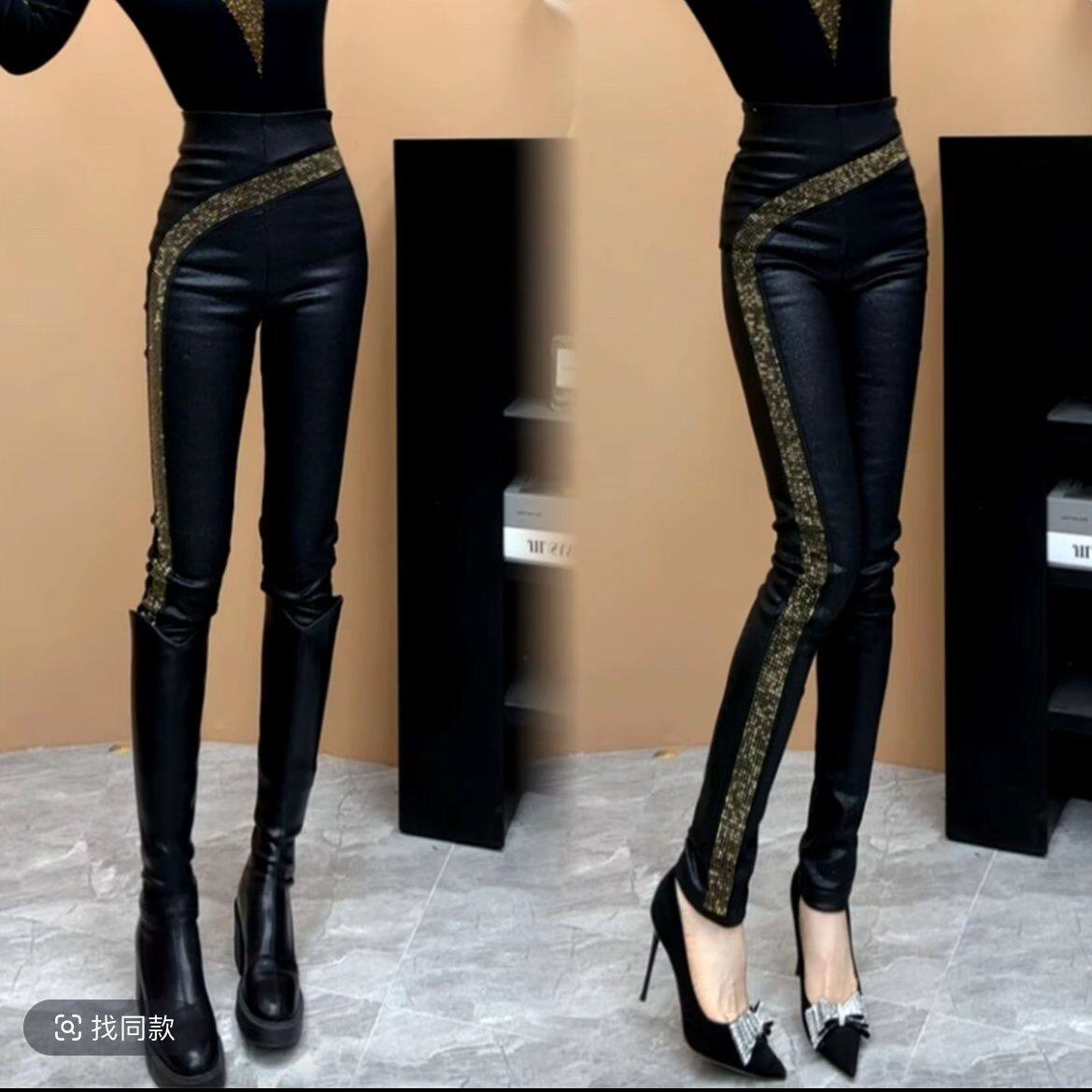 - 打底皮裤女