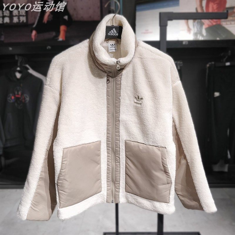 Adidas阿迪达斯外套女三叶草冬季新款加厚保暖仿羊羔绒夹克HC6603