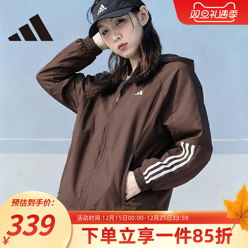 阿迪达斯外套女2025冬季新款运动服官方正品连帽防风休闲梭织夹克