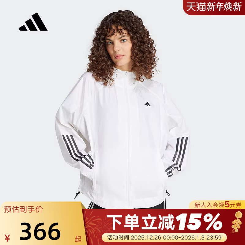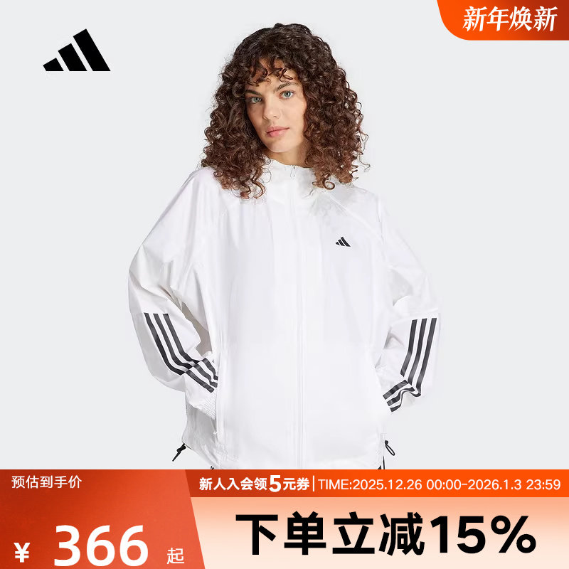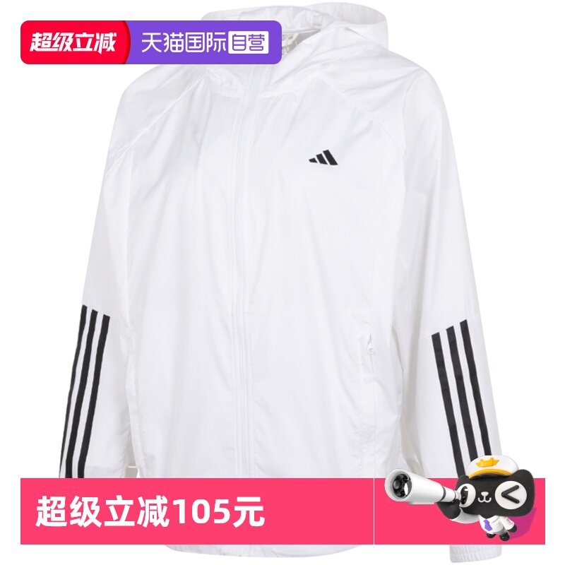 阿迪达斯外套女装2025秋季新款跑步健身运动服梭织连帽夹克JX7382