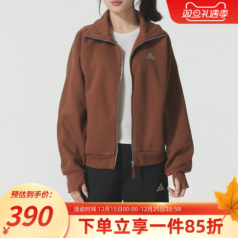 阿迪达斯外套女2024秋冬新款加绒保暖立领休闲运动夹克正品JJ3546