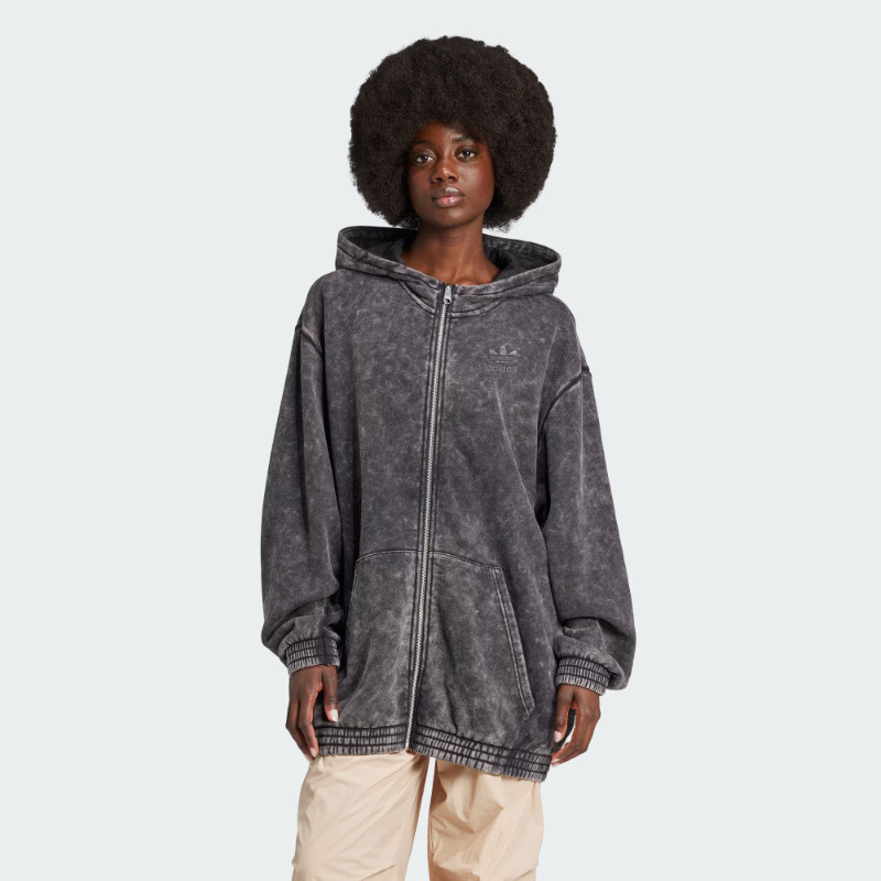 阿迪达斯外套女装2025冬季灰色运动服训练休闲连帽夹克JJ1128